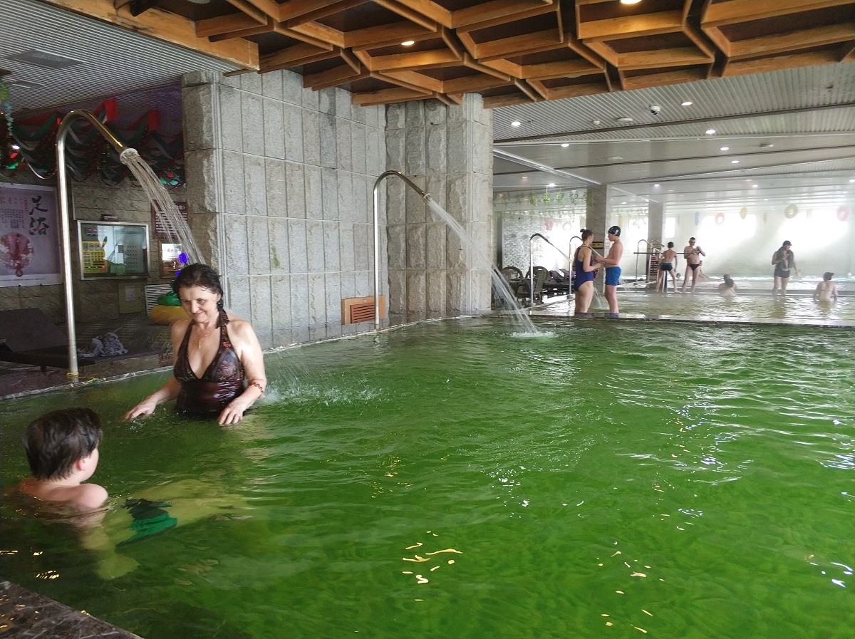 - посещение комплекса термальных источников. вода разной температуры и состава. радоновые ванны,нефритовые ванны с имбирем, сероводородные ванны,горячая ванна с минеральной водой, ледяной источник.Нефритовая комната отдыха с горячими камнями.