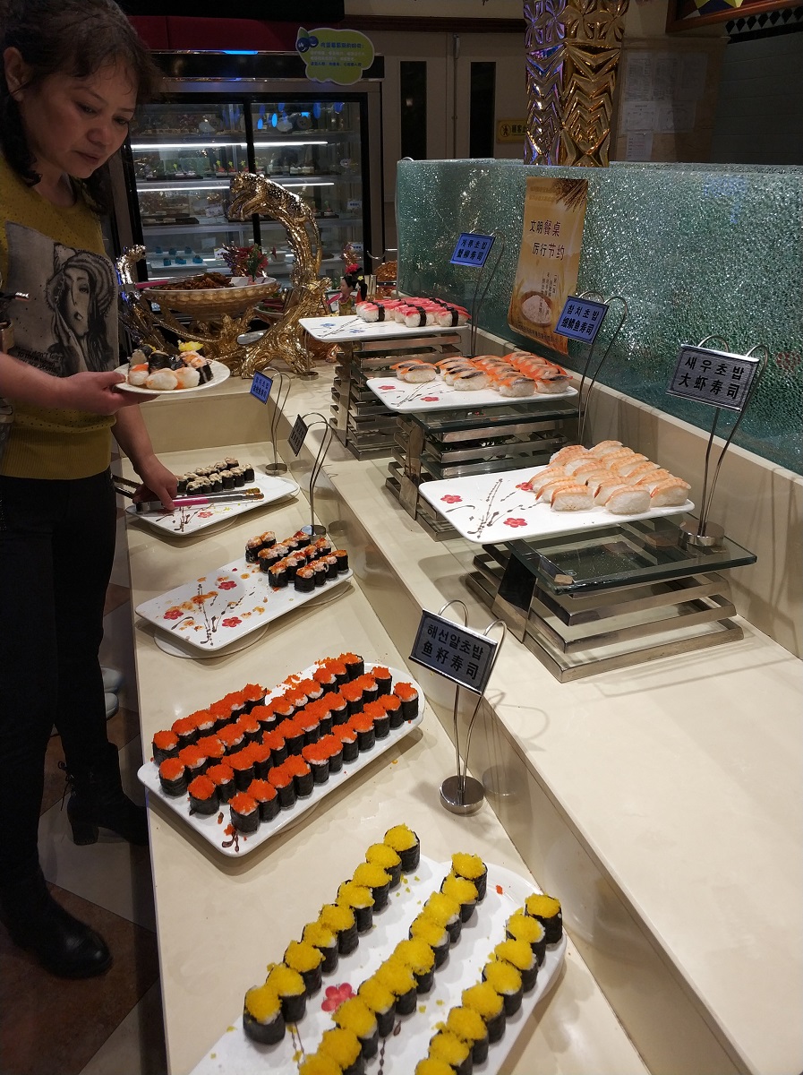 - ужин в корейском ресторане по системе шведский стол. все напитки, в том числе алкогольные входят в стоимость. Представлена корейская и европейская кухни. Огромное разнообразие десертов и фруктов.